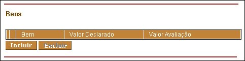 A exclusão de um bem pode ser realizada marcando a caixa de seleção existente antes do nome a ser excluído, e clicando no botão Excluir.