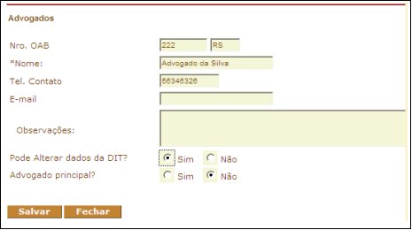 Informe a identificação do advogado e o status em relação à DIT.