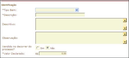Este cadastro é mais simplificado, bastando informar a descrição do bem e seu valor declarado.